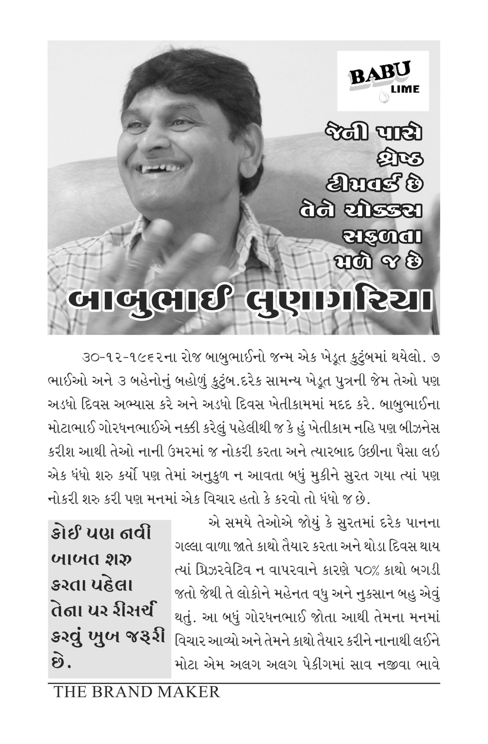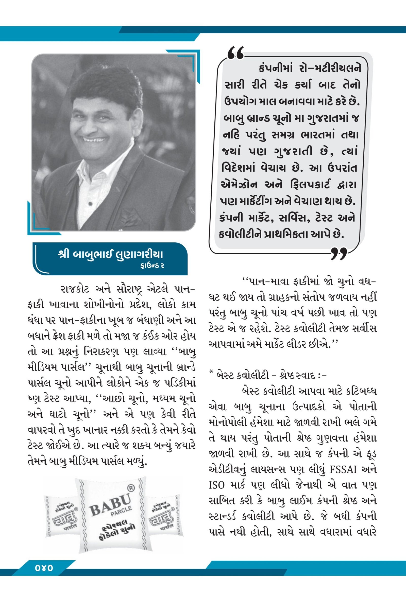 Babulime is known for it’s quality products with consistent customer satisfaction. BABU LIME PRIVATE LIMITED.  brings more than 30 years of experience in the FMCG industry. Our R&D, Quality control, storage, cleaning and processing capabilities are focused towards delivering products that maximize your profitability, and ensure reliability.